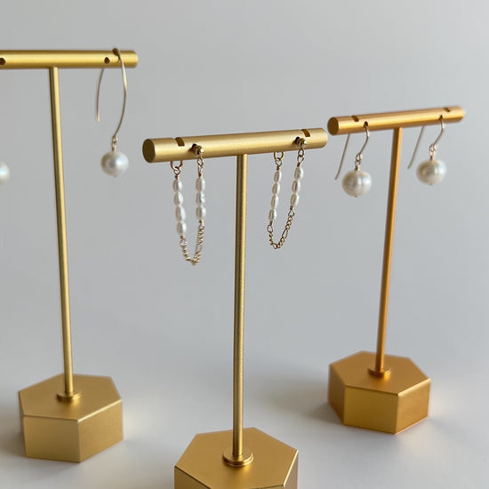 Each natural white pearl is picked by hand for quality and meticulously hand-wrapped in 14K Gold Filled.